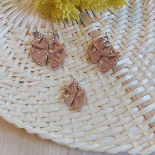 j’ai également réalisé de beaux dégradés comme sur ces boucles d’oreilles « Nuage » et « Arc en ciel » pour mes filles. Lorsque l’on fait un dégradé je trouve que la pâte perd de son éclat.